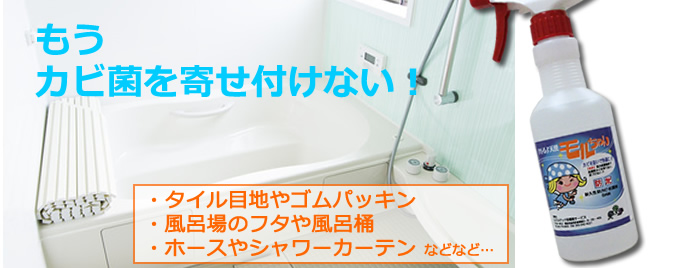 洗面所・浴室、クロスなどにカビが発生するたびにカビ取り剤を使い、ゴム手袋やマスクして、殺菌していませんか?これらカビ取り剤はほとんどが塩素系漂白剤で、すぐ目の前でカビが消滅し、白く目立たなくなることを目的に開発された殺菌剤です。繰り返し使用されることにより体にも害がありカビは耐性菌となり、発生頻度がだんだんと短くなって行きます。