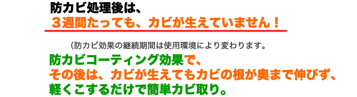 さらに塗布した部分の表面ははっ水性が高くなり、結露が軽減されることによってもカビが発生しにくくなります。