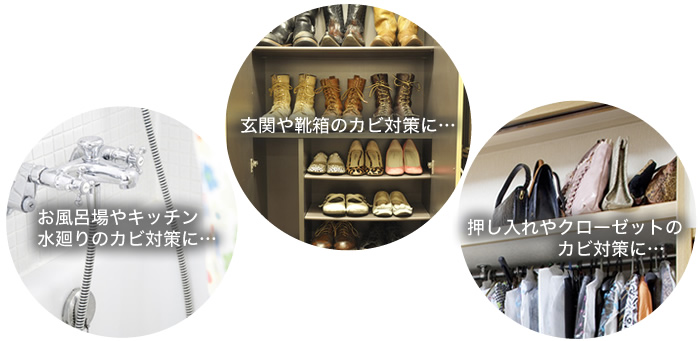 ●カビの生えやすい、室内の住まいのあらゆるところに使えます。