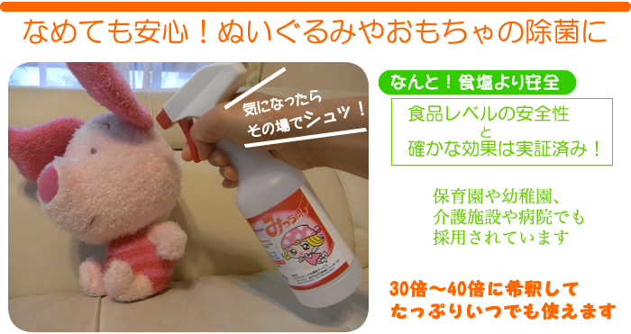 ●赤ちゃんや小さなお子さんのぬいぐるみやおもちゃの除菌に最適な除菌スプレー。