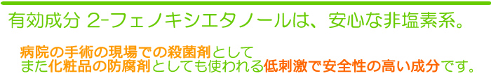 ●特許取得フェノアルキルクロライドの成分のひとつ「2-フェノキシエタノール」は消臭効果も高く、